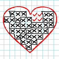 Затем, по контуру отмечаешь только целые клеточки внутри сердечка.